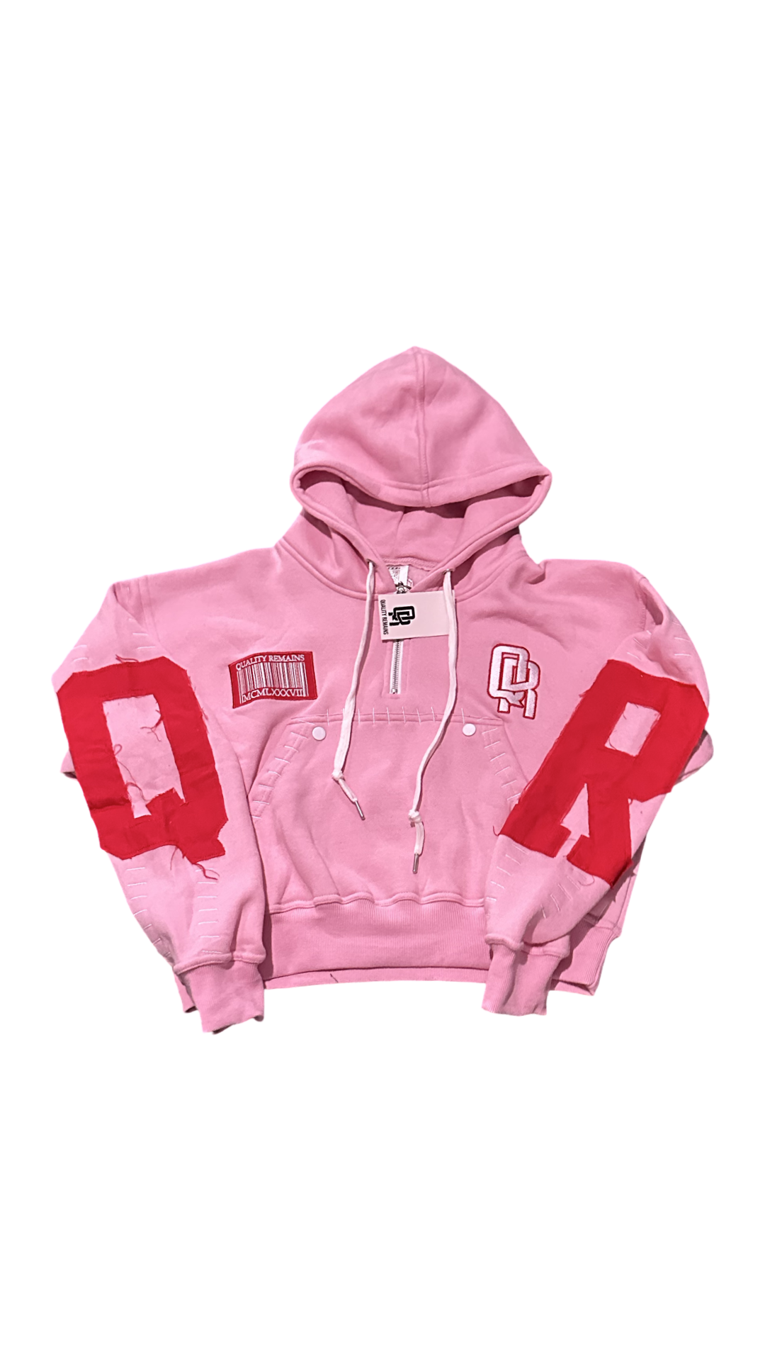 BASEBALL STITCH QUARTER ZIP HOODIE (woman's cropped)