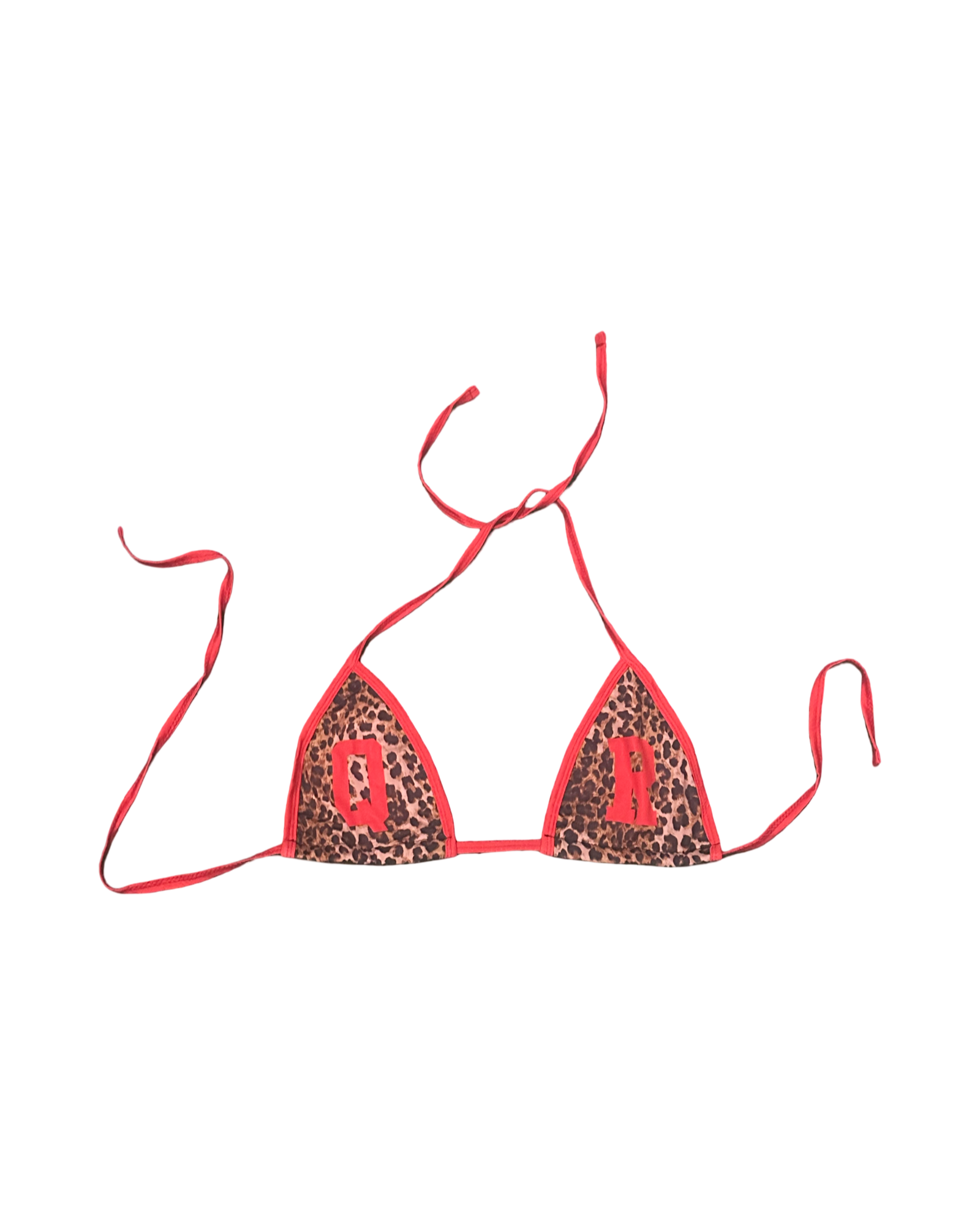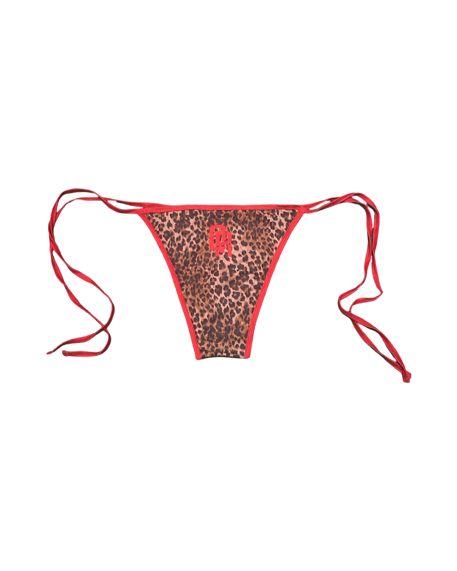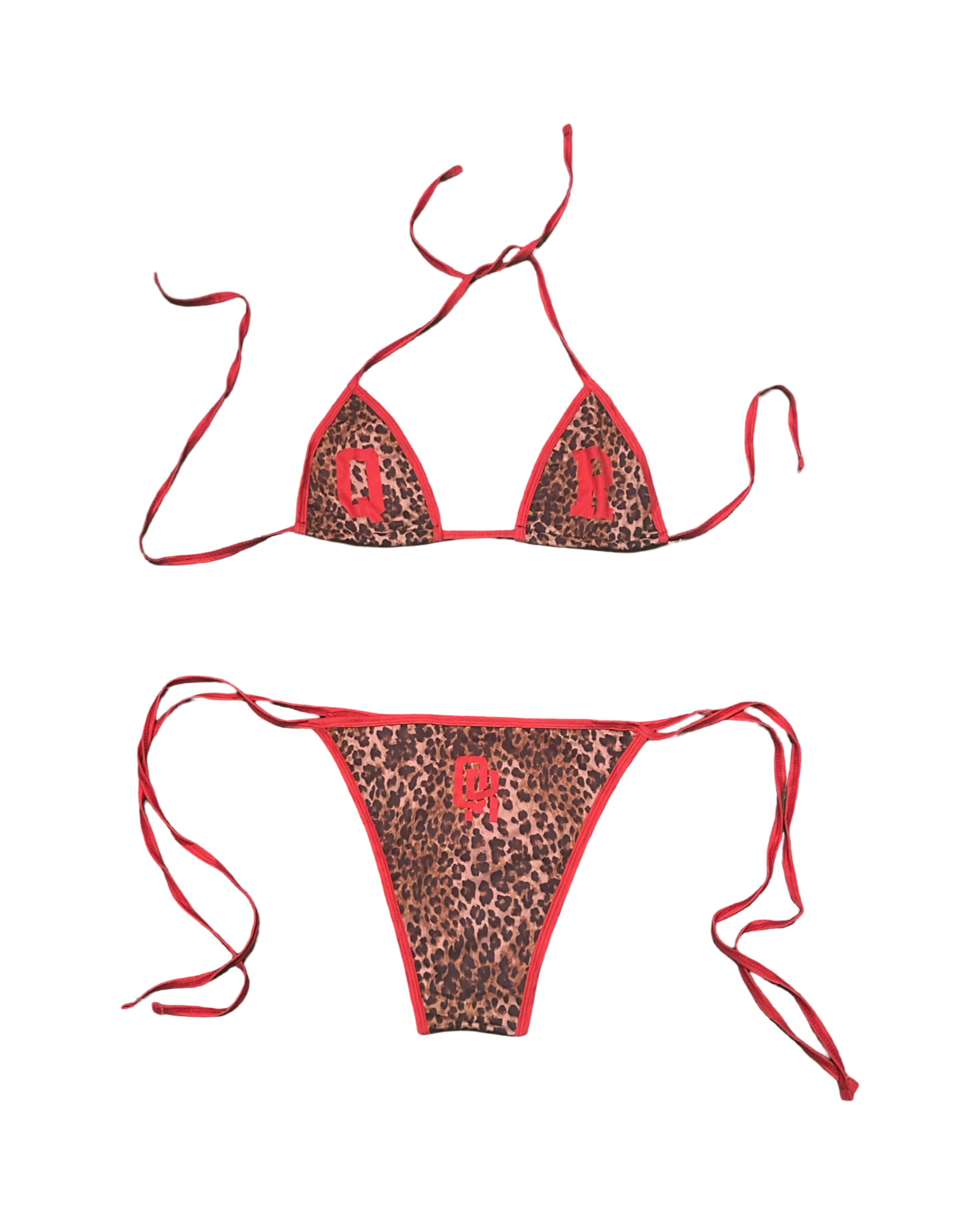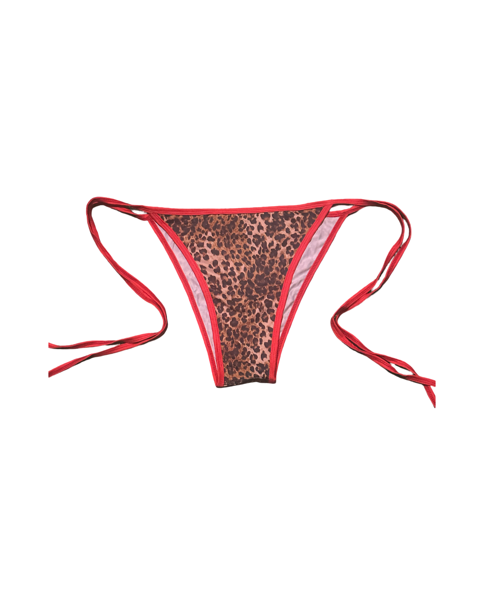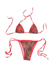 2 Piece bathing suit for women, leopard print, halter triangle top with thong bottom and drawstring closure