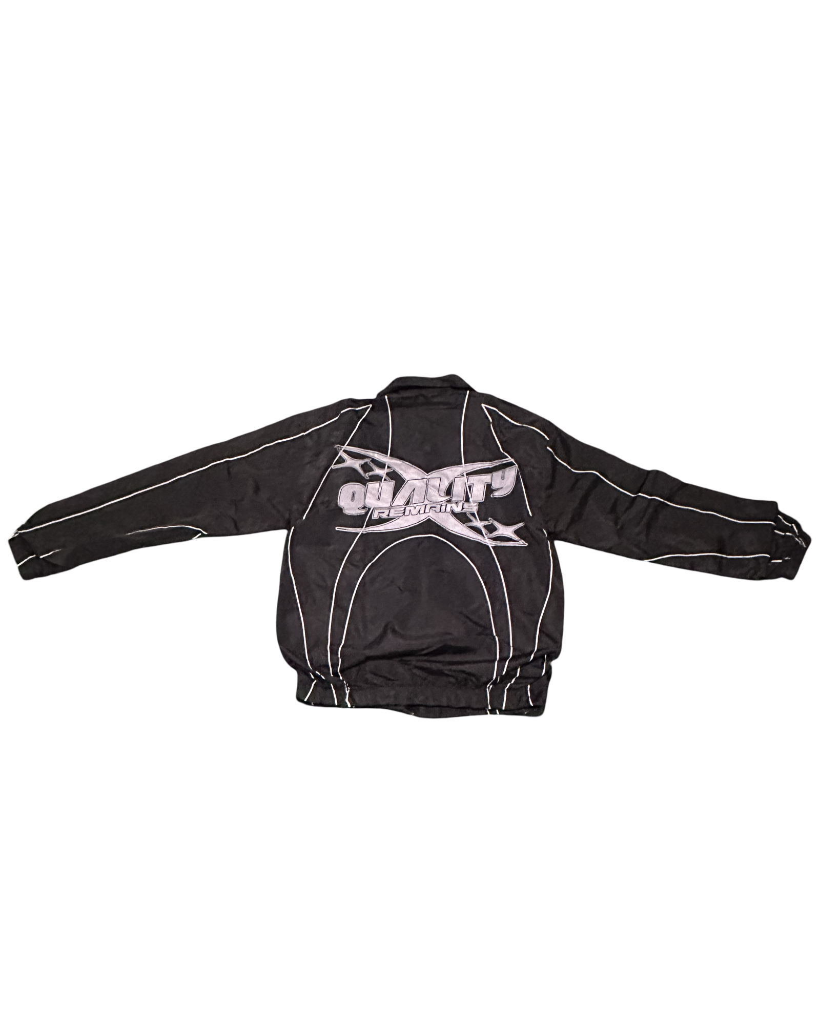 QR windbreaker jacket with QR signature logos and brand name in 3m on chest and back, signature Q zipper with pockets. 100% Nylon material with polyester inside